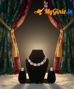 Square Shaped Silver Toned American Diamond Stone Studded Necklace With Earring Light Pink