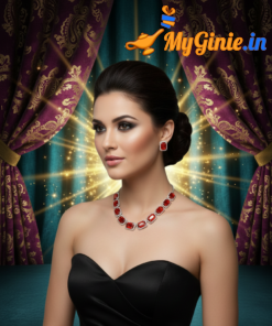 Multi Stone Studded Necklace With Red Earring Jewellery Set For Women