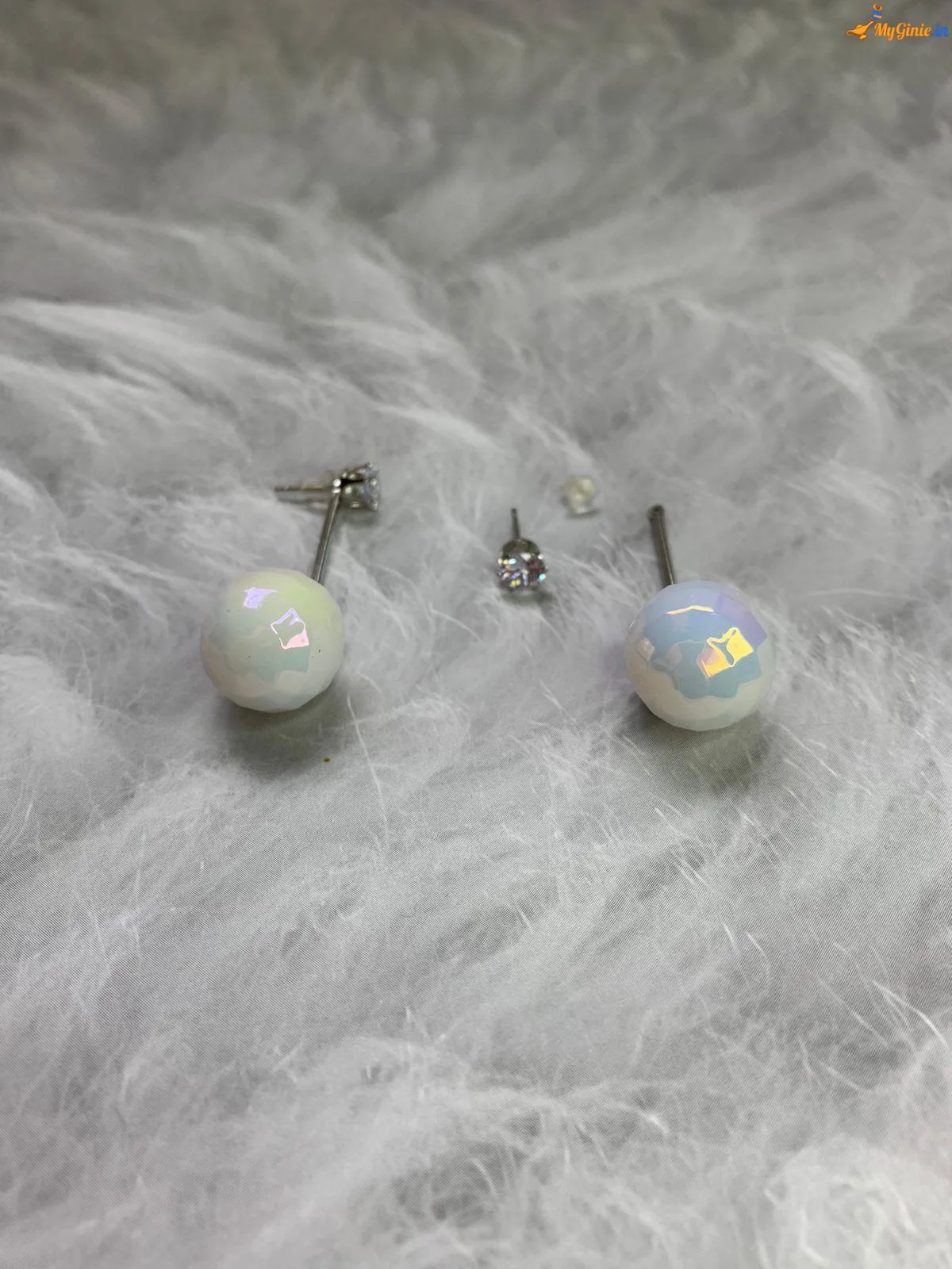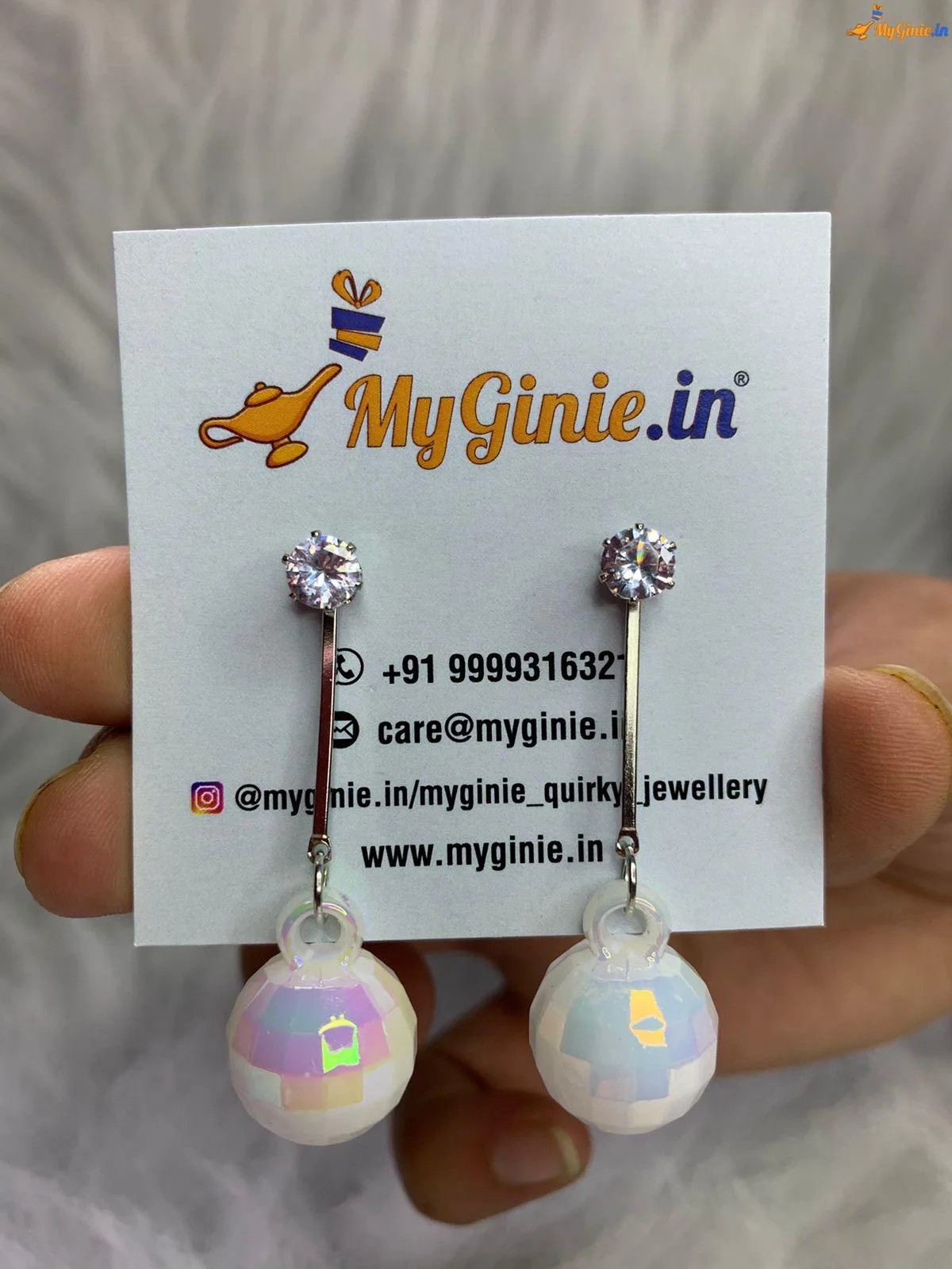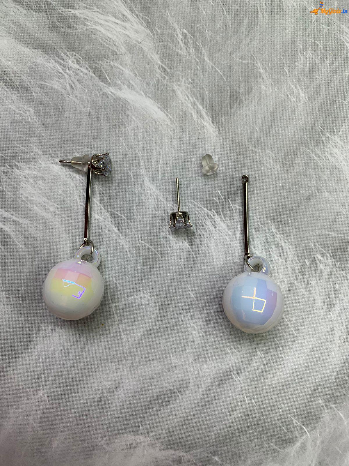 2 In 1 Disco Ball Earrings Stud White Rainbow Colour For Women
