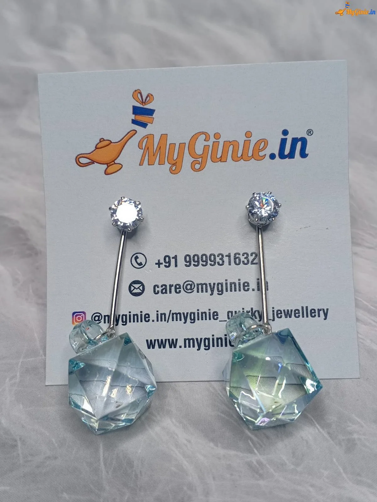 2 In 1 Hexagon Earrings Stud Light Blue Rainbow Colour For Women