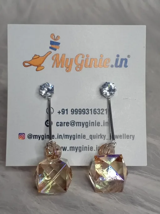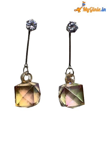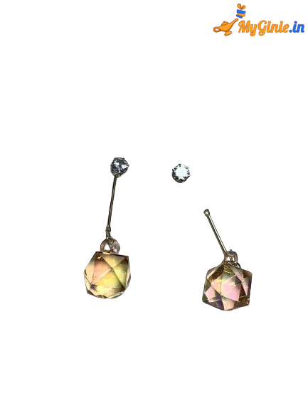 2 In 1 Hexagon Earrings Stud Sun Set Yellow Rainbow Colour For Women