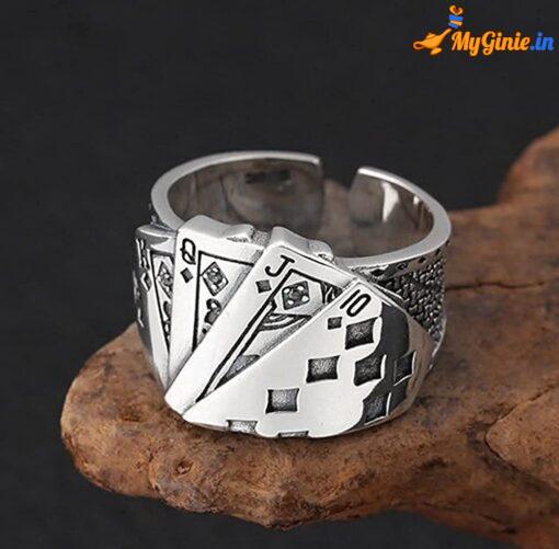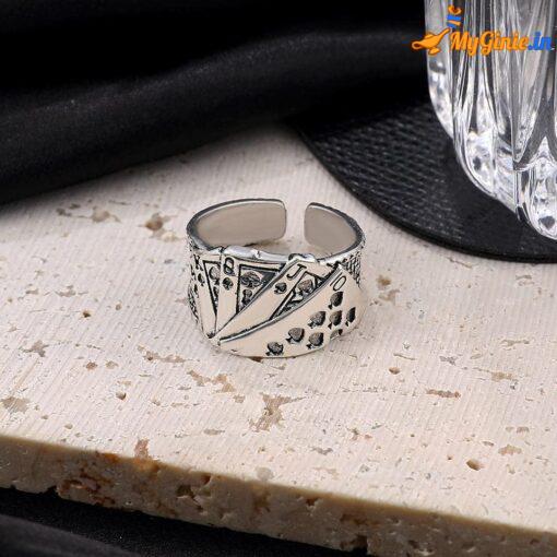 Ace King Queen Jack Playing Cards Stylish Biker Ring Adjustable