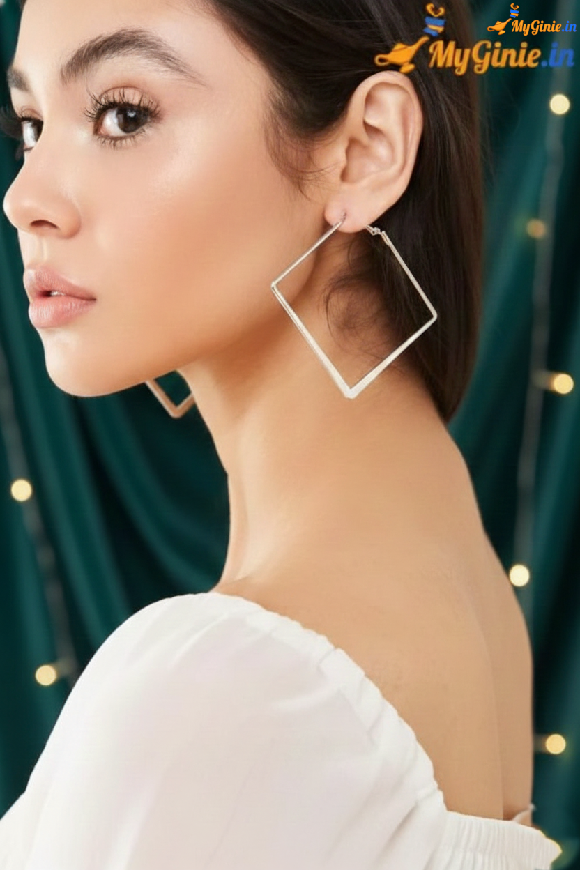 Big Square Hoops Earrings Silver