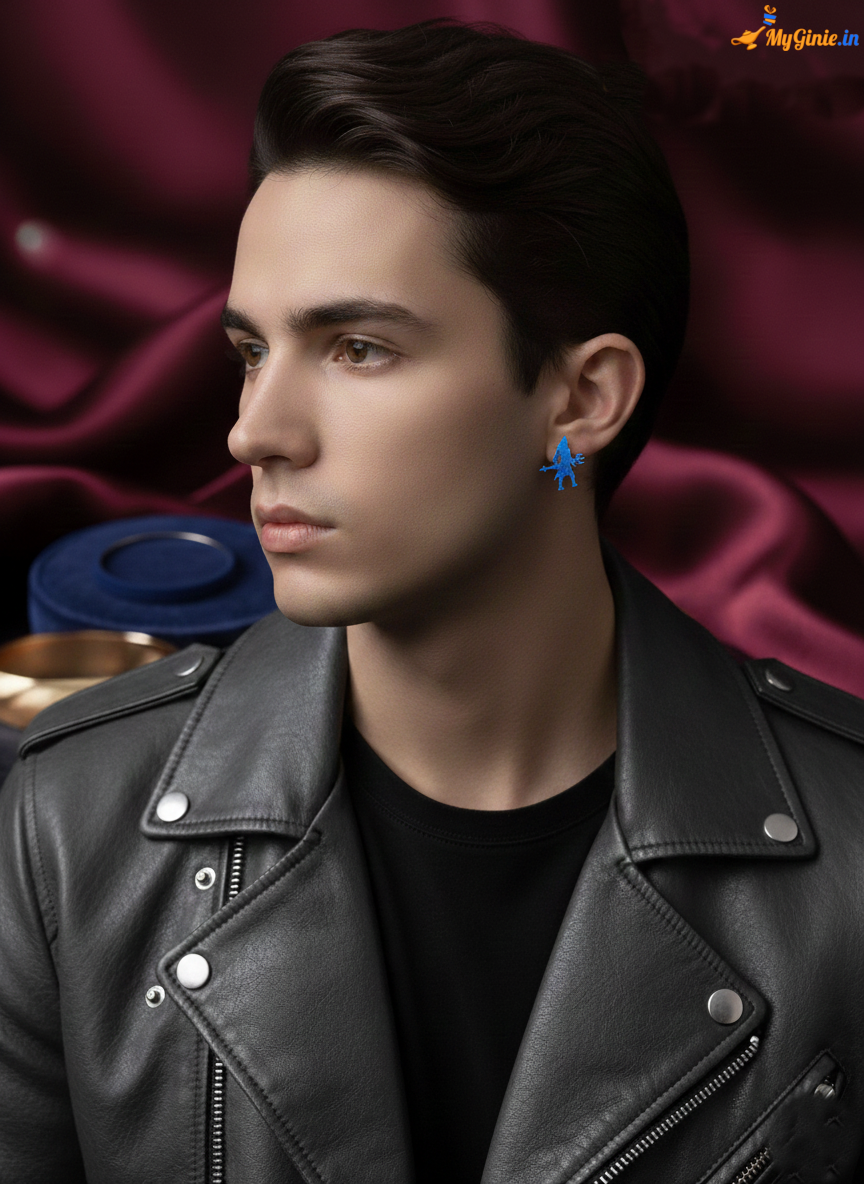 Myginie Gifts Private Limited presents Blue Shiv Piercing Stud Earrings for Men And Boy, Good Quality, Lightweight and Pretty, Clip-On Hoop Earrings, Makes your Fashion Amazing, 1 Pair a Set