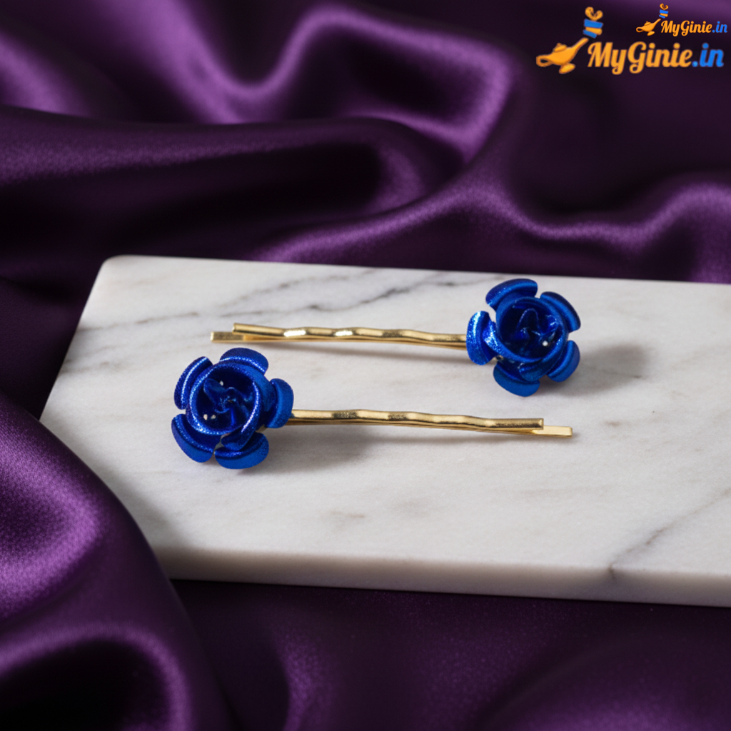 Ideal for: Girls and Women; Usage: Everyday as well as festivals. These Bobby pins are simple yet elegant for your everyday as well as festive use. There is a large shiny flower on the bobby pin.