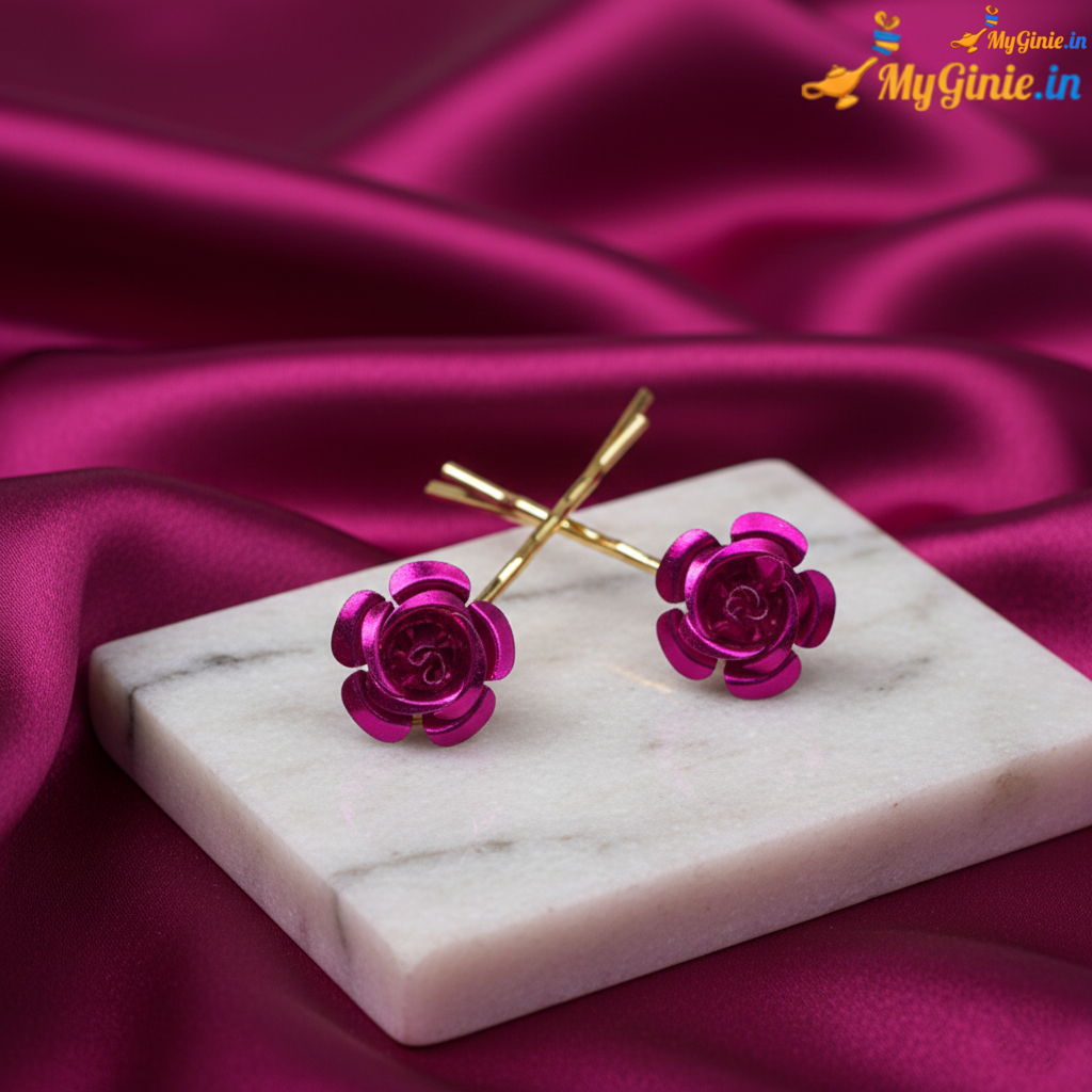 Ideal for: Girls and Women; Usage: Everyday as well as festivals. These Bobby pins are simple yet elegant for your everyday as well as festive use. There is a large flower on the bobby pin.