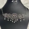 Discover the beauty of understated elegance with our Oxidised Silver Necklace and Earring Set. This stunning jewellery set features a beautifully crafted necklace paired with matching earrings, designed to elevate any outfit with its unique bohemian flair. The intricate oxidised silver finish adds depth and character, making this set perfect for both casual outings and special occasions. Lightweight and comfortable, it allows for easy wear throughout the day, whether you’re dressing up for a night out or adding a touch of style to your everyday look. Make a statement with this exquisite oxidised silver necklace and earring set—a timeless accessory that reflects your unique style!