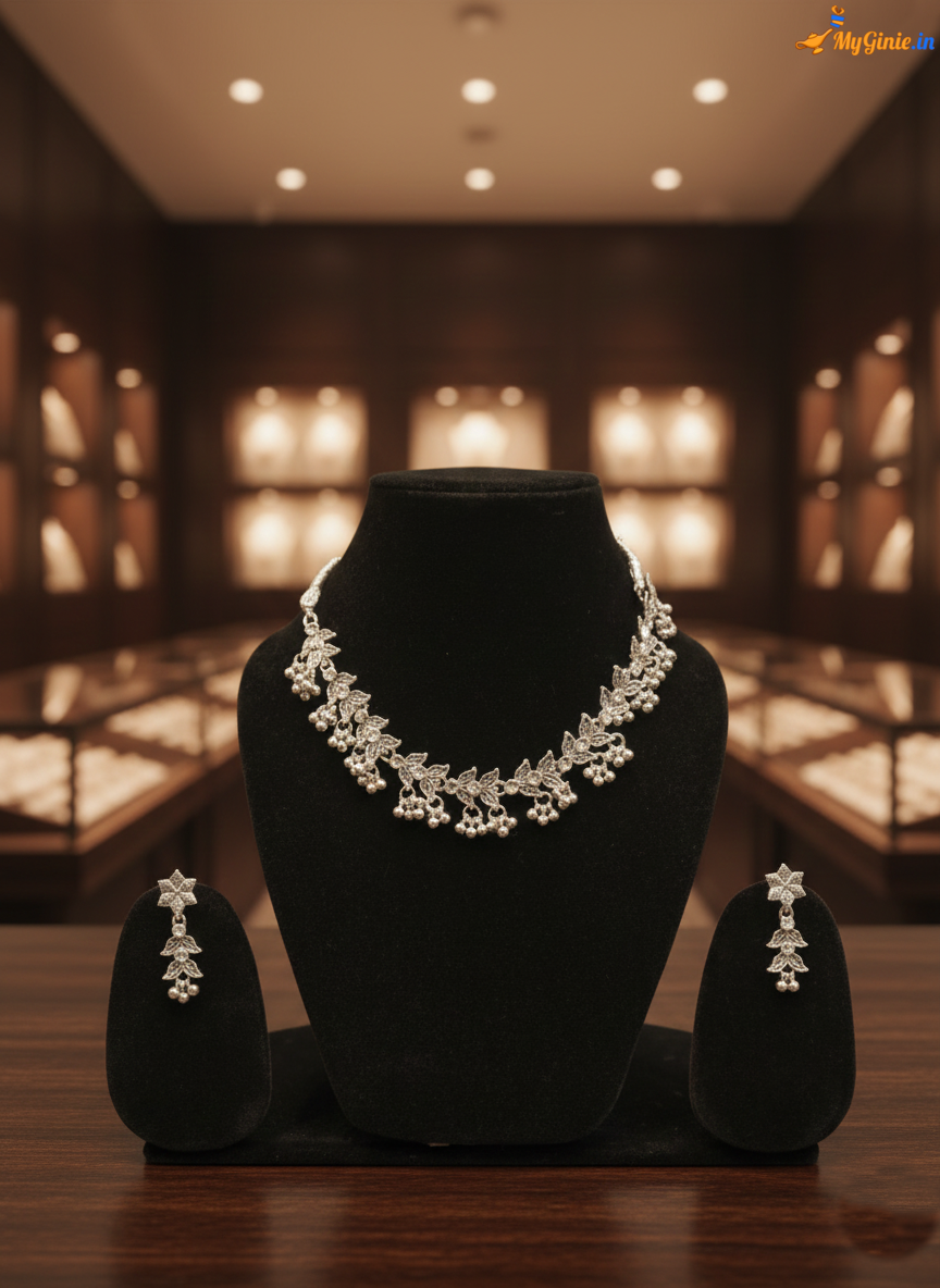 Bohemian Inspired Oxidised Silver Necklace with Earrings