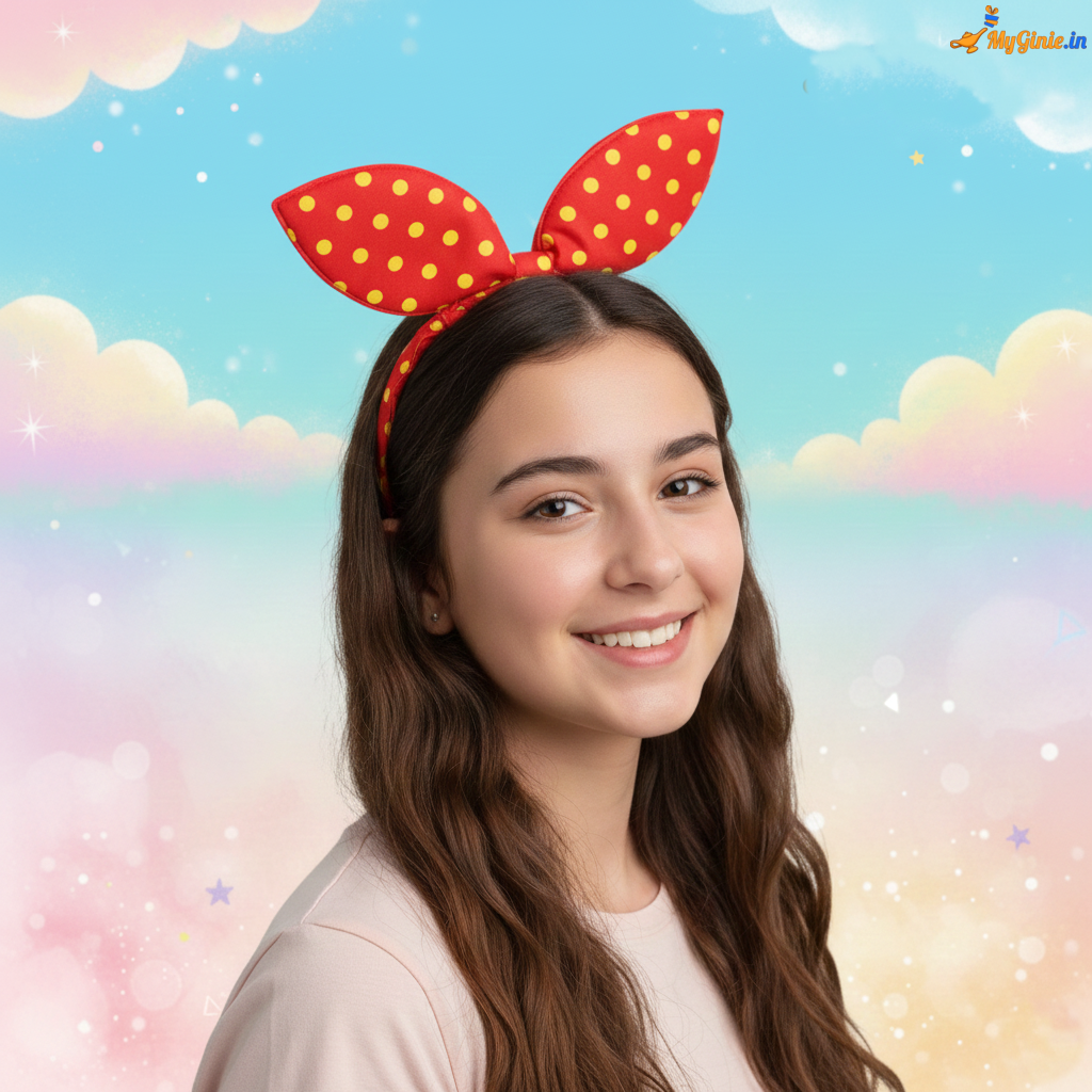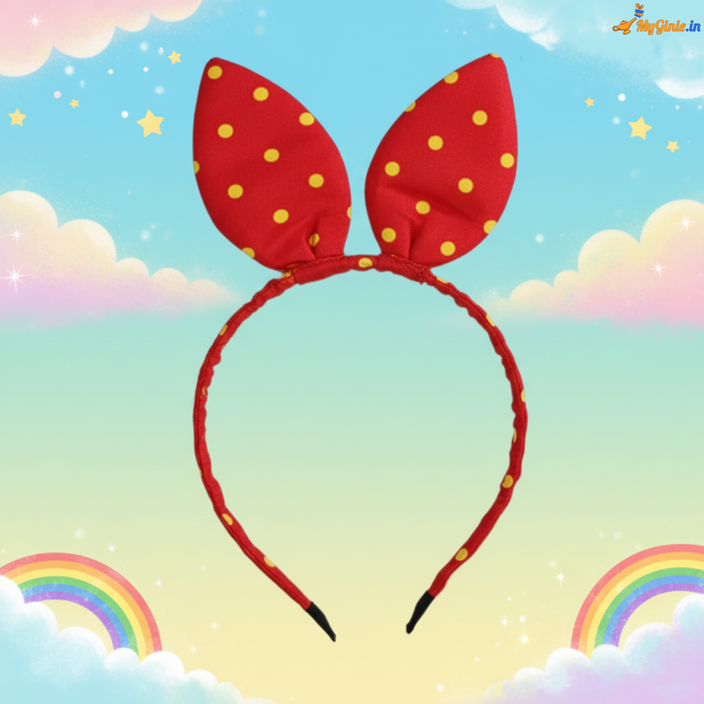 Bunny Ears Hairband Polka Dot Print Red