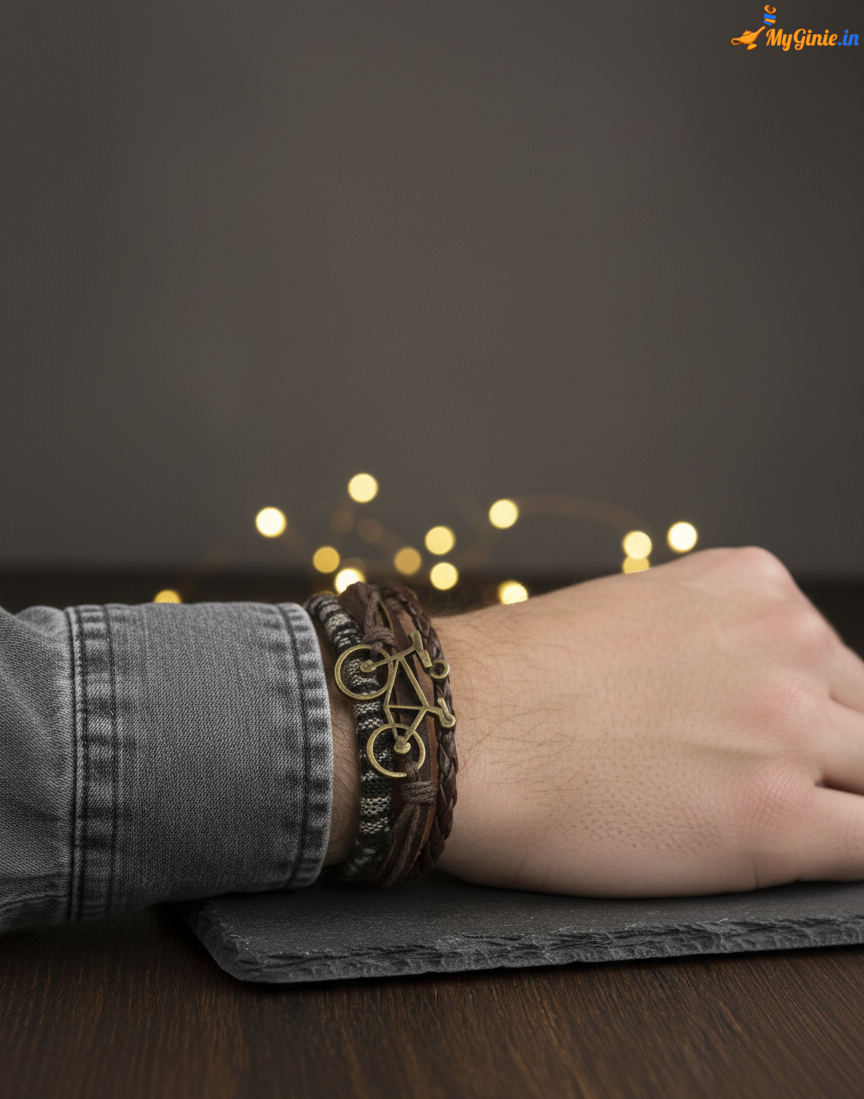 Myginie Gifts Private Limited Wristband An ideal accessory for all occasions. To make your accessories last longer avoid harsh chemicals and moisture. Handcrafted genuine leather bracelet for men and boys Stretchable to suit any wrist size Suitable for daily, casual and party wear, wear them with your casual attire, with your favourite jeans or a t-shirt to look effortlessly cool. Thinner leather bracelets are the easiest most versatile pieces to work with and look great when teamed with a watch. Best love gift for husband, boyfriend, brother.