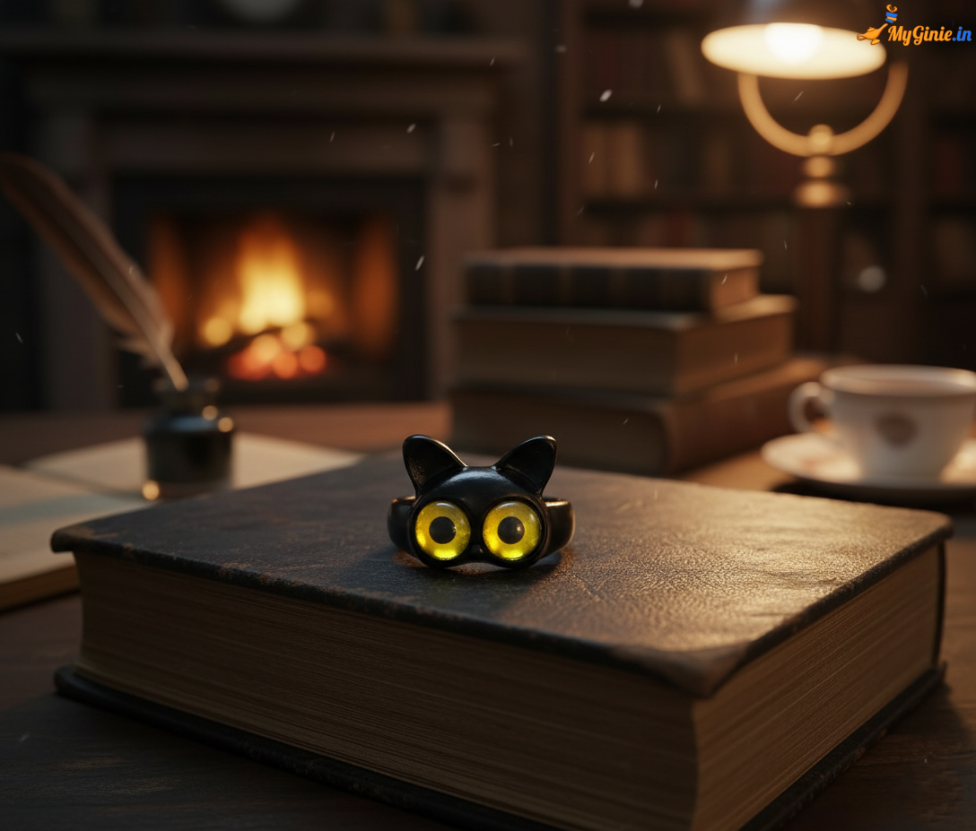 Cat Lover Adjustable Black Ring Yellow Eyes