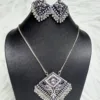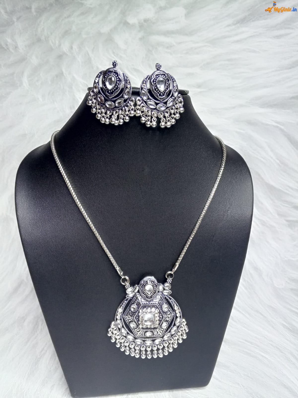 Enhance your jewellery collection with our Stunning Oxidised Silver Long Necklace with Matching Earrings, designed for those who appreciate unique and elegant accessories. This exquisite set features a beautifully crafted long necklace that gracefully drapes around your neckline, complemented by matching earrings that add a touch of sophistication. The intricate oxidised silver finish gives this set a vintage charm, making it perfect for both casual outings and special occasions. Lightweight and comfortable, it’s designed for all-day wear, allowing you to express your style effortlessly. Make a statement and showcase your unique style with this beautiful oxidised silver long necklace and earring set—an accessory that radiates elegance and charm!