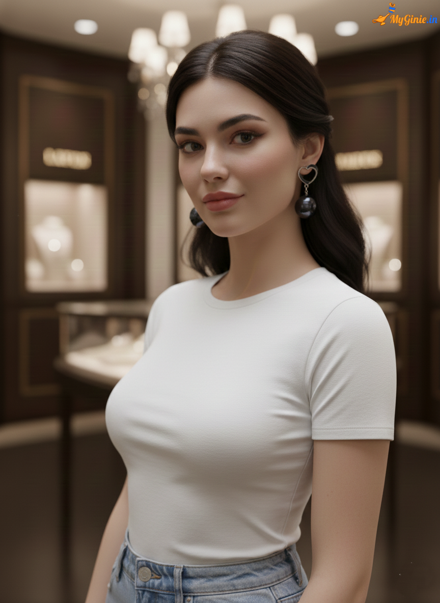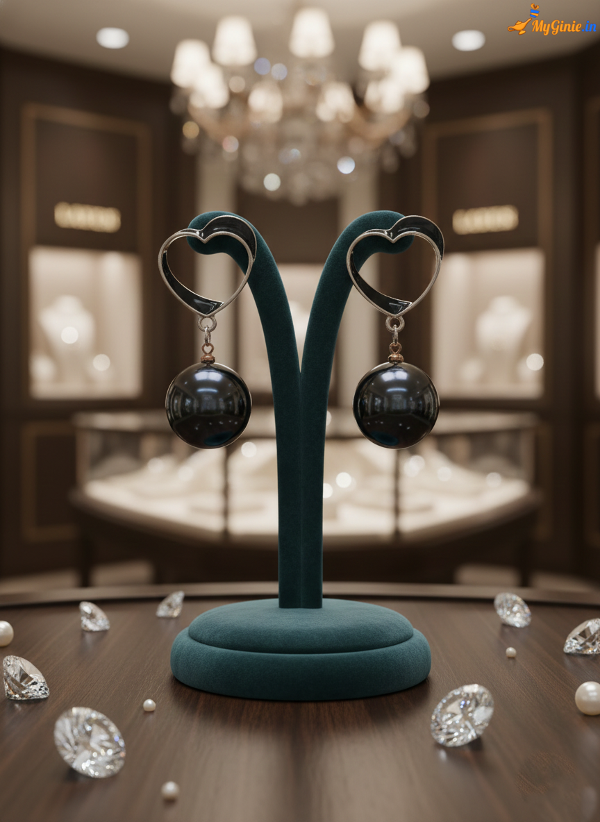 Chunky Heart And Pearl Earring For Women Black Colour