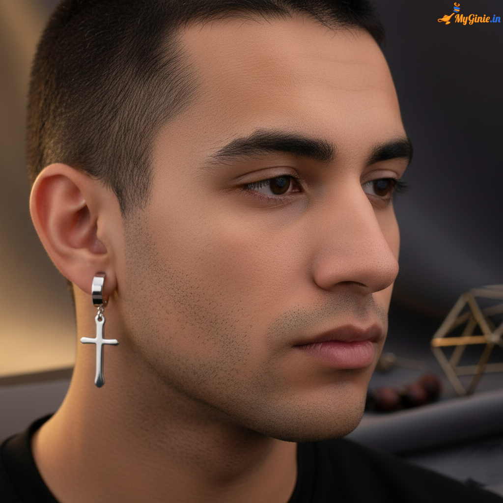 Clip On Dangle Drop Cross Hoop Hinged Earrings Set Silver Colour