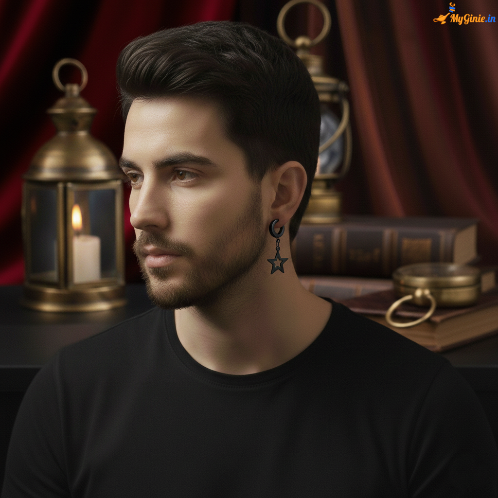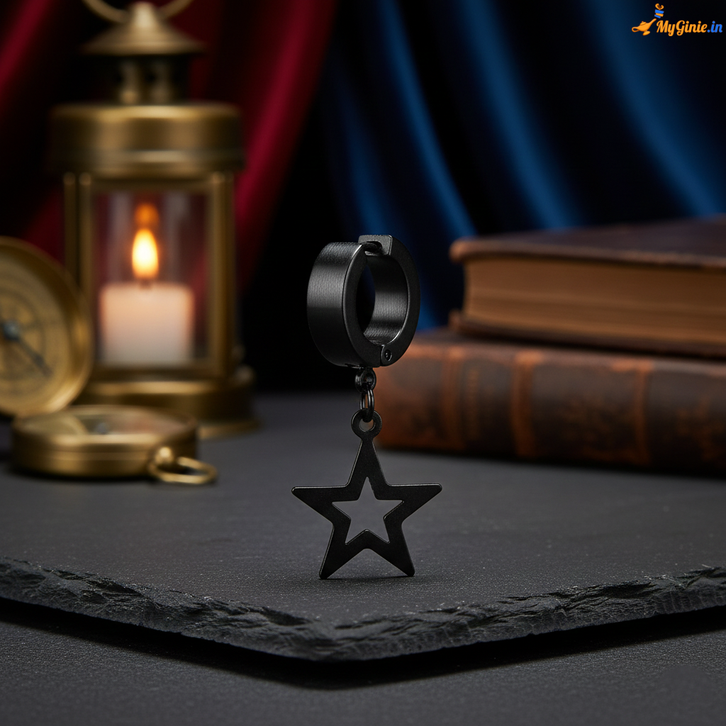Clip On Dangle Drop Star Hoop Hinged Earring For Men 1 Piece Black
