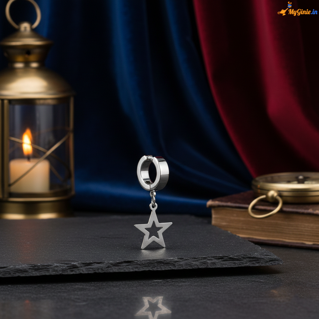 Clip On Dangle Drop Star Hoop Hinged Earring For Men 1 Piece Silver