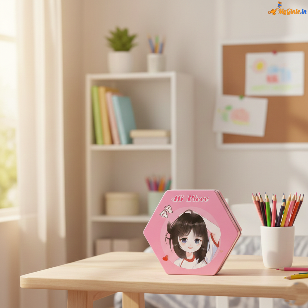 Inspire creativity and endless fun with this 46-Piece Kids Coloring Kit, beautifully packed in a sturdy hexagon-shaped box. This all-in-one art set includes a variety of coloring and drawing essentials, making it perfect for young artists at home, school, or on the go. The compact hexagon box keeps everything neatly organized while adding a stylish touch to your child’s art collection.