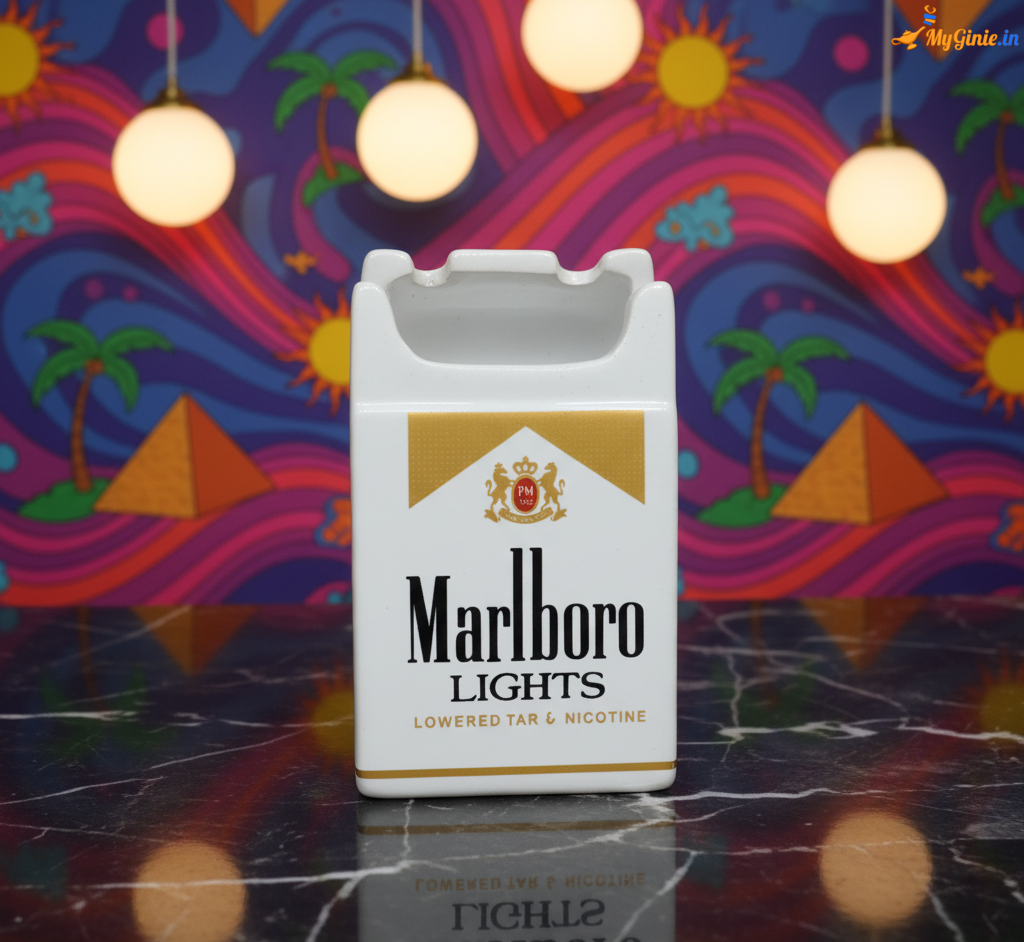 Creative Marlboro Lights Printed Cigarette Box Shape Ashtray for Home or Car