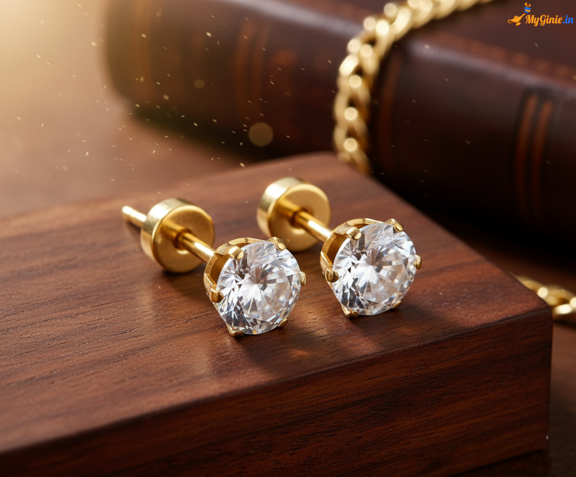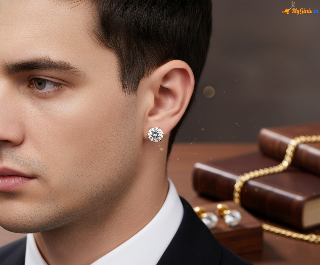 Crystal Studs Golden Colour For Men