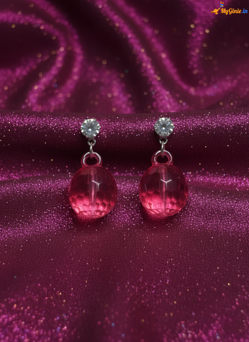 Disco Ball Earrings Dark Pink Rainbow Colour For Women Girls