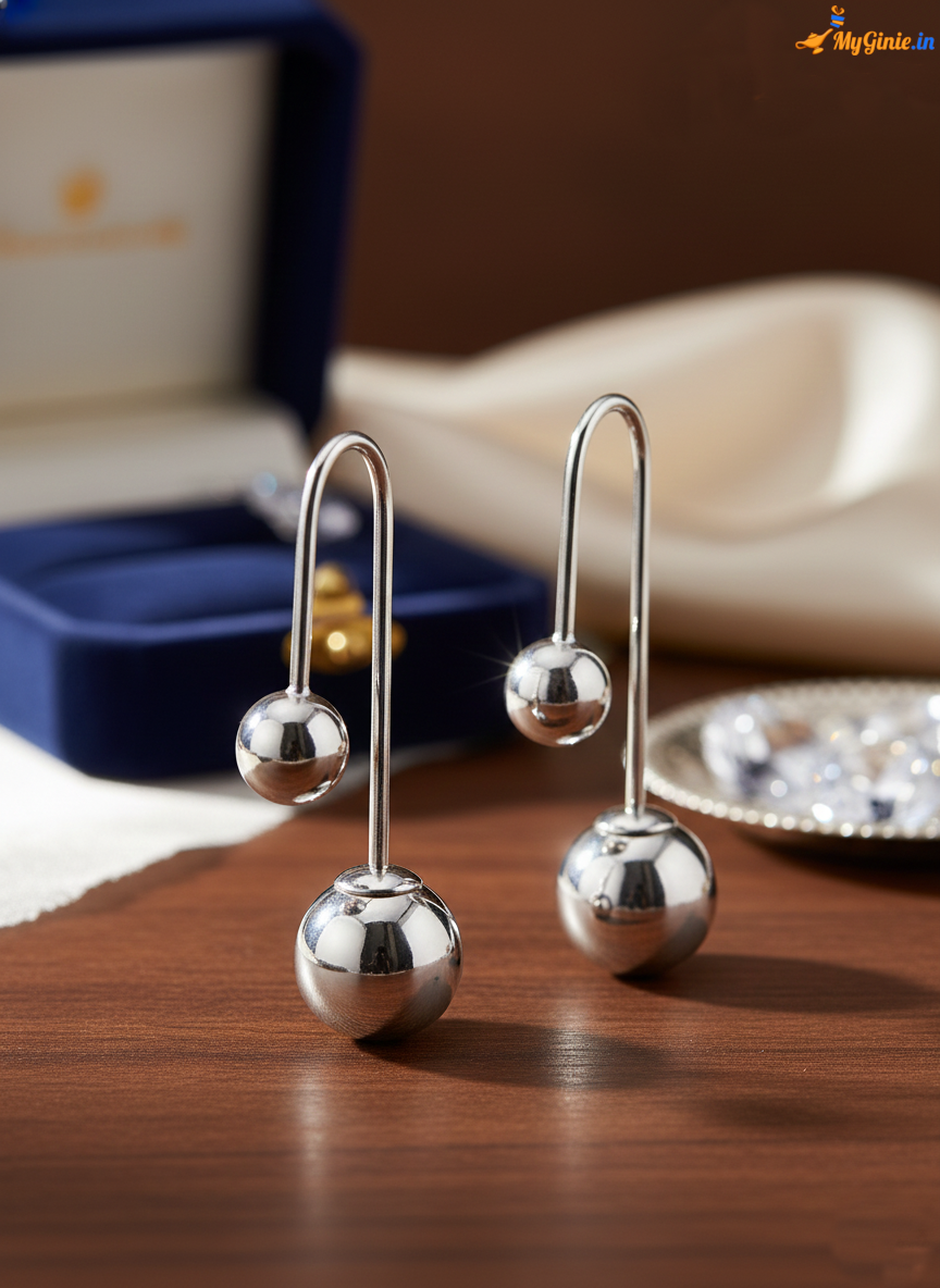 Introducing our exquisite double sided ball long earrings, a true gem for your jewellery collection. These earrings are not just accessories; they’re a statement of timeless elegance. Dimensions: Length: 5 centimeters Weight: 3 grams per pair Design: These earrings are designed to elevate your style with their captivating Silver color. Their double-sided charm adds a unique touch, making them a versatile addition to your wardrobe. Style Note: Whether you’re donning Indian traditional attire or Western outfits, these earrings effortlessly complement your look. They bridge the gap between cultural diversity, adding a touch of sophistication to every ensemble. Gifting: Searching for the perfect gift? Look no further. Our fashion earrings are an impeccable choice for special occasions such as birthdays, anniversaries, weddings, and Valentine’s Day. They also harmonize seamlessly with traditional Indian outfits, making them ideal for festive celebrations like Diwali, Rakhi, Eid, and more. These earrings are a timeless symbol of affection and will be treasured for years to come. Care: To ensure these earrings retain their allure, please follow these care instructions: – Avoid contact with water or harsh chemicals. – Store them in a dry and cool place to prevent any damage. – Clean gently with a soft cloth to maintain their lustrous shine. – Handle them with care, as rough handling may cause unnecessary wear and tear. With these earrings, you can effortlessly add a touch of sophistication to any outfit, making a lasting impression wherever you go. Elevate your style, celebrate special moments, and cherish the elegance of these timeless fashion earrings.