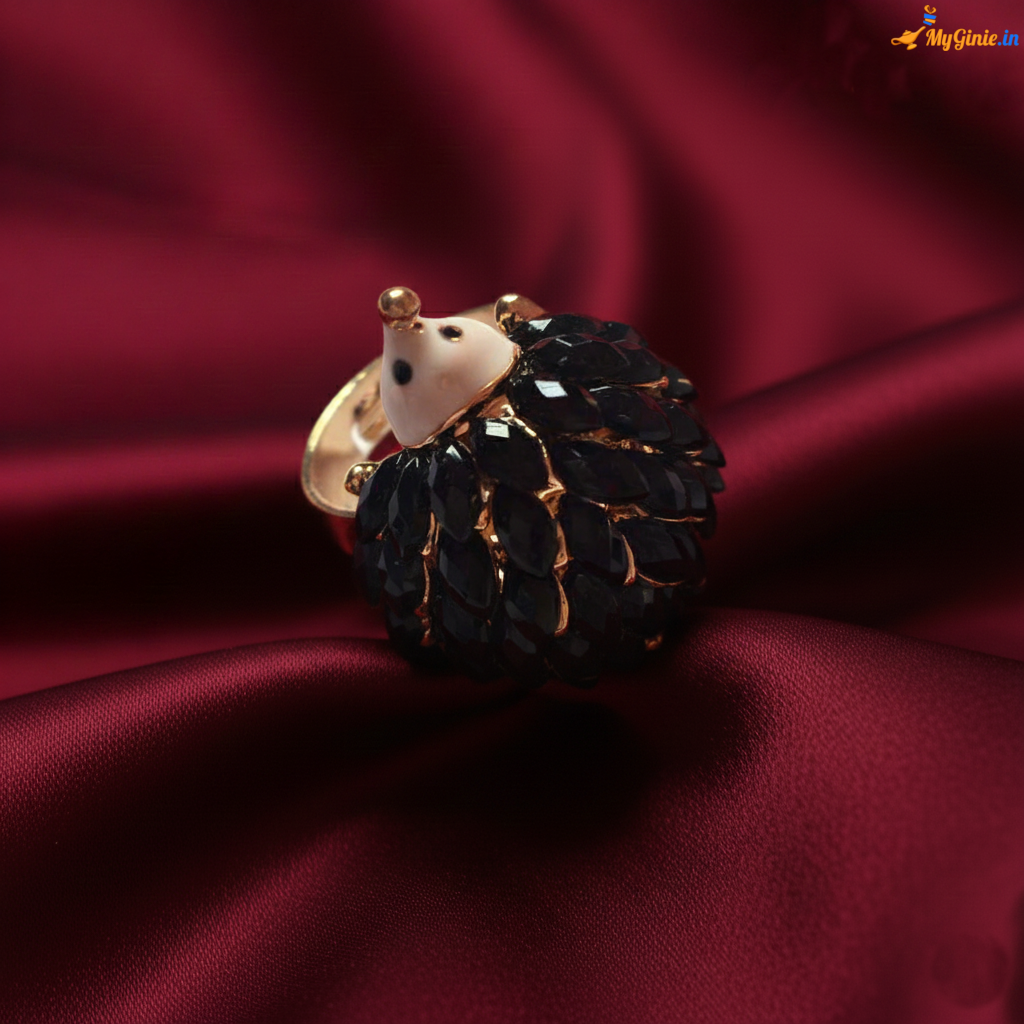 Erizo Hedgehog Black Stones Ring. Perfect for Parties, Dinner, Dance, Movies, Birthdays, Anniversary, Gifting, Brunch, Clubbing, etc.