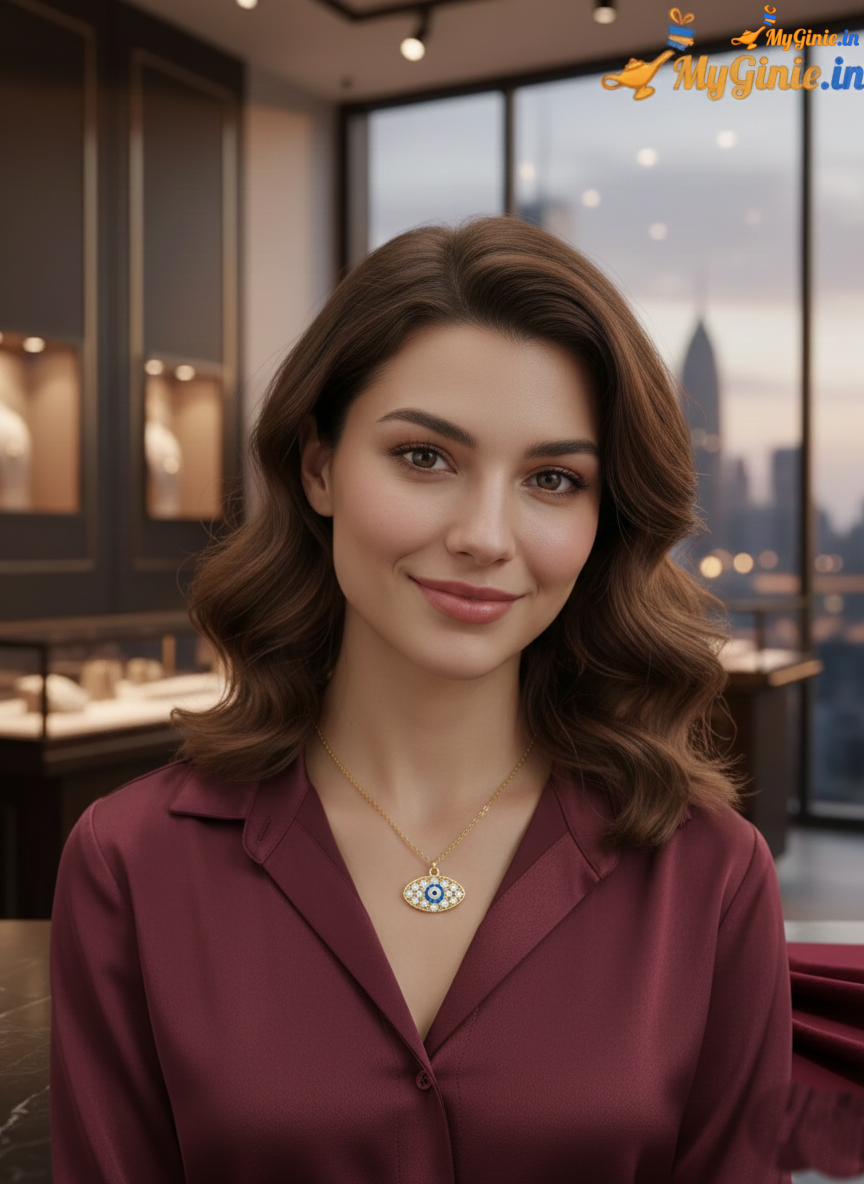 Myginie Gifts Private Limited’s Evil-eye Wards off Danger – Whether it’s you’re car breaking down or spinning out of control or the house becoming harmed by insects, flooding, wood rotting etc the evil eye keeps a protective glance over things to maintain peace and prosperity. Beautiful and elegant evil eye pendant necklace for men & women…Often seen as a mix of beautiful blue hues, it’s considered a symbol of protection. Purely handmade with basal setting brass work.