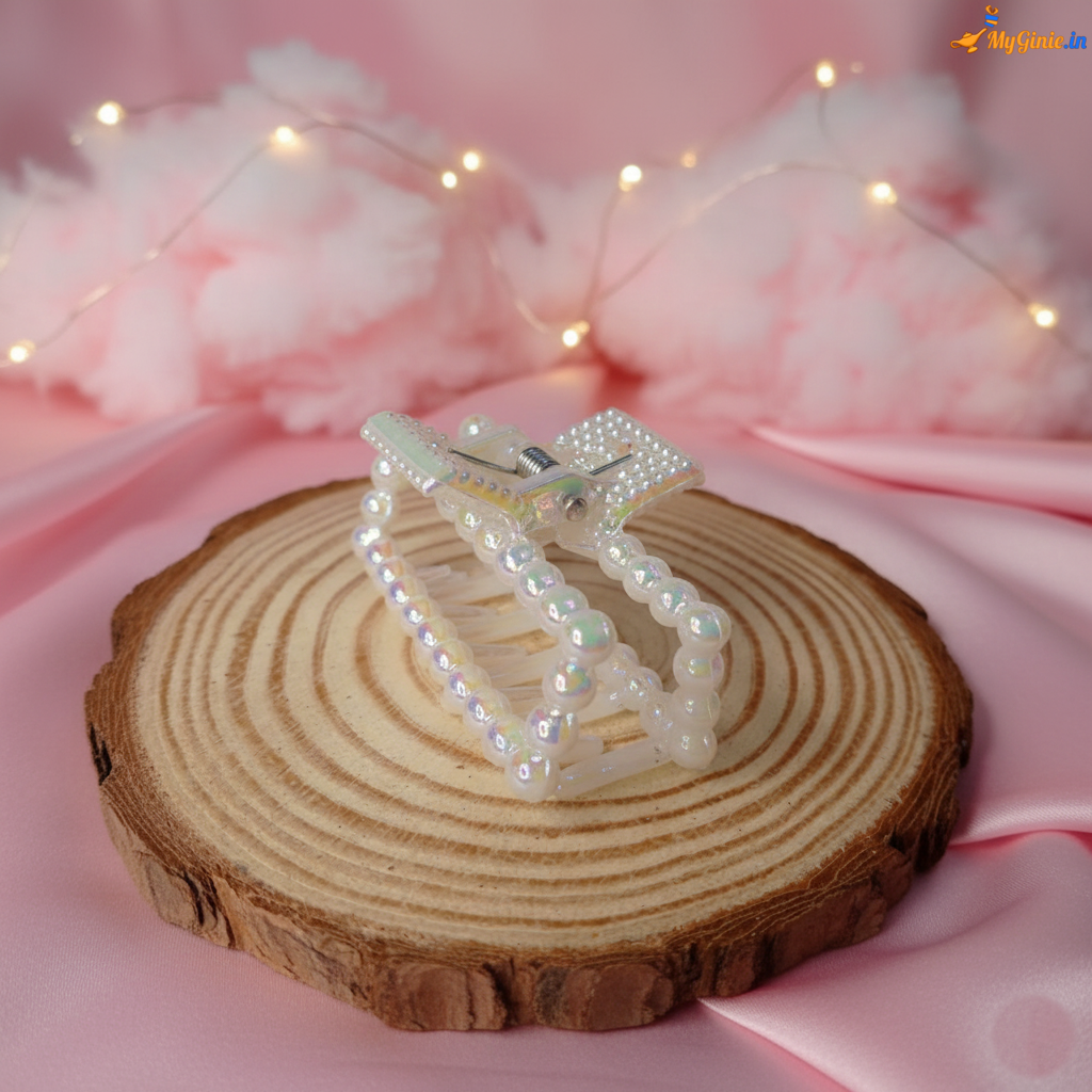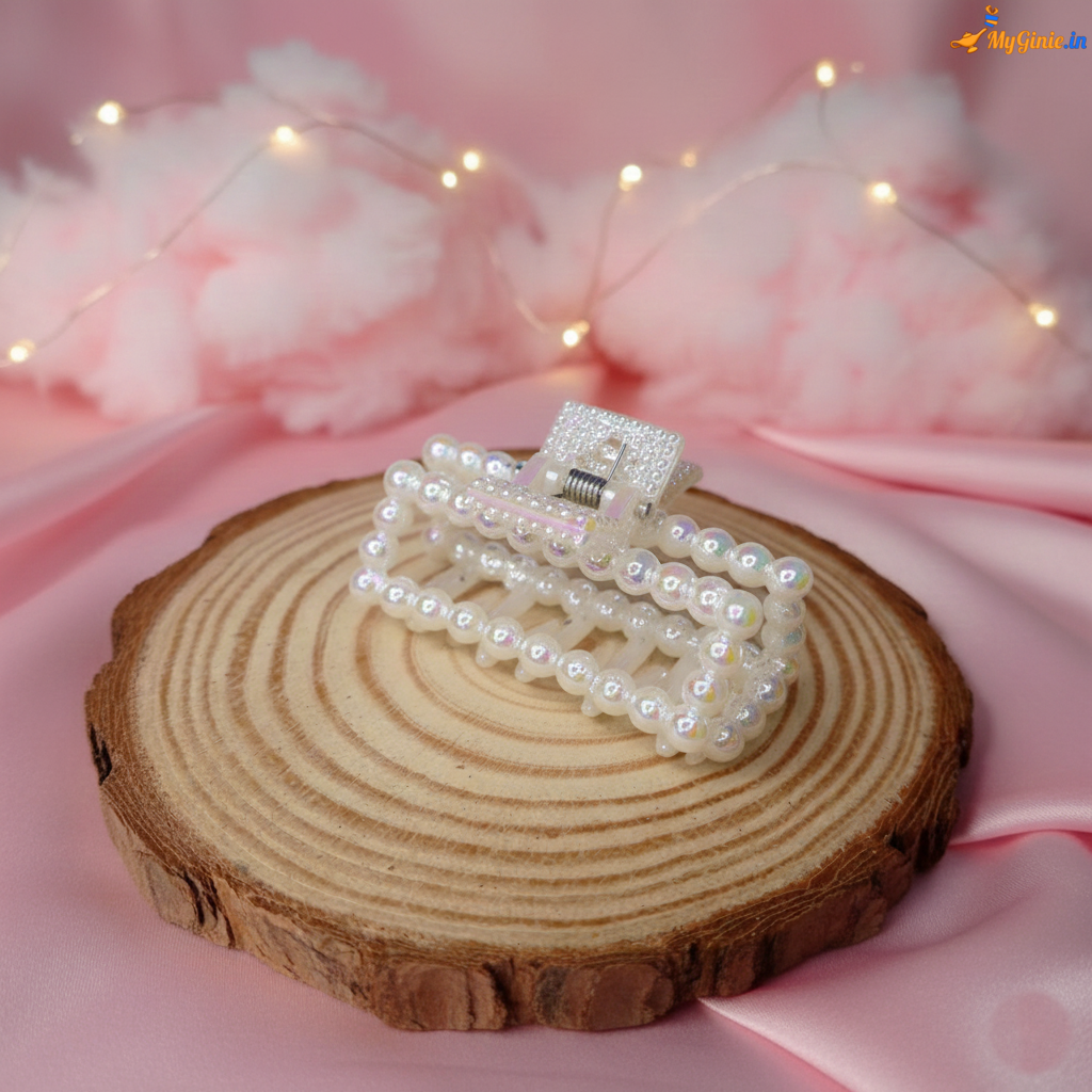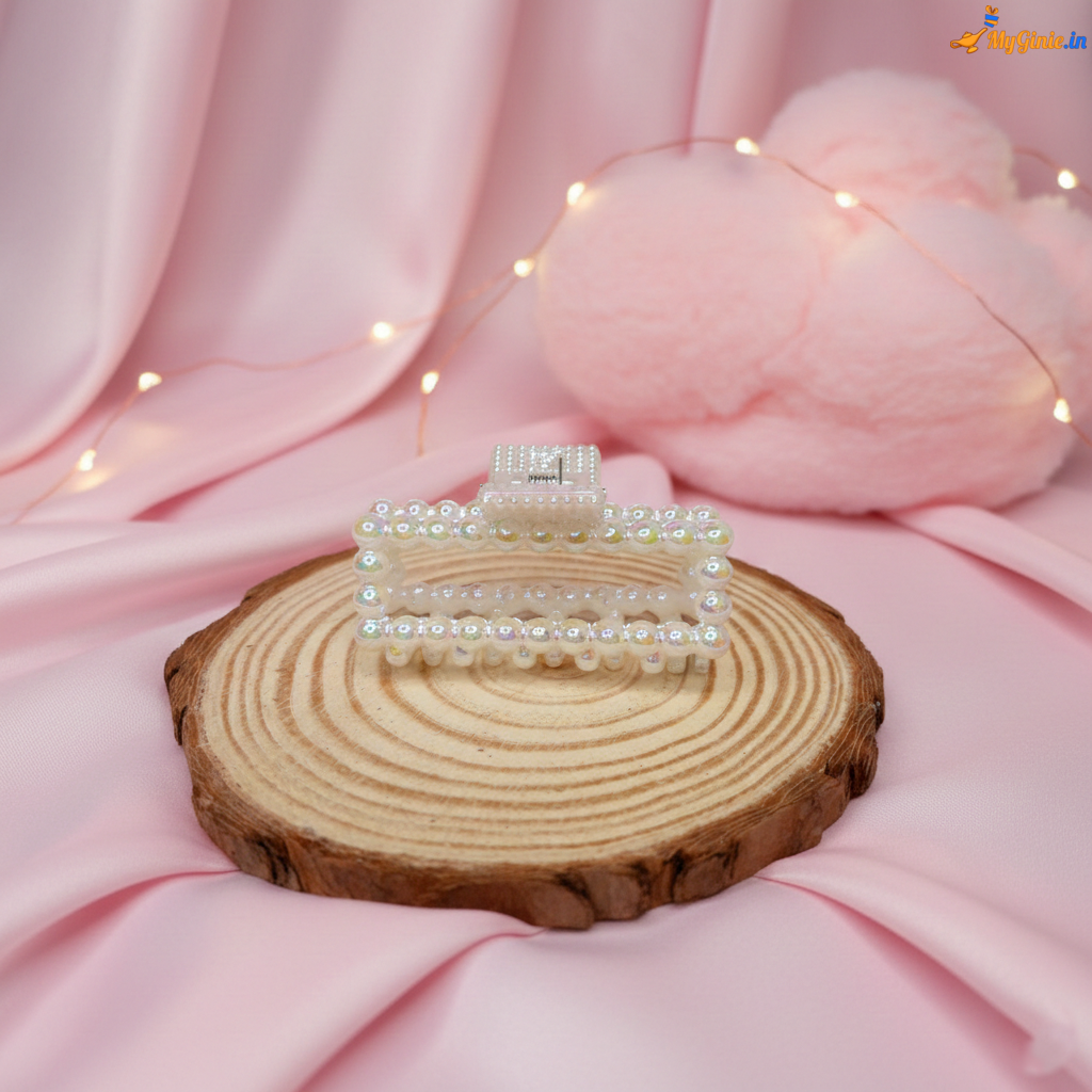 Enhance your hairstyle with this elegant white pearl rectangle hair clutcher. Designed with a classic rectangular shape and pearl detailing, it adds a touch of sophistication while providing a strong and comfortable grip.