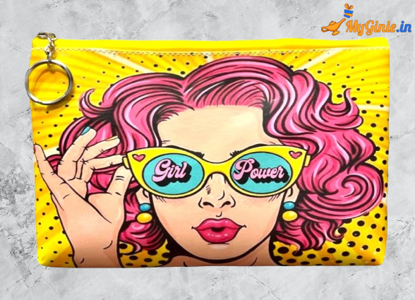 Girl Power Print Pouch for Travel Makeup Pouch for Girls,Makeup Organiser Bag, Small Travel Toiletry Bag