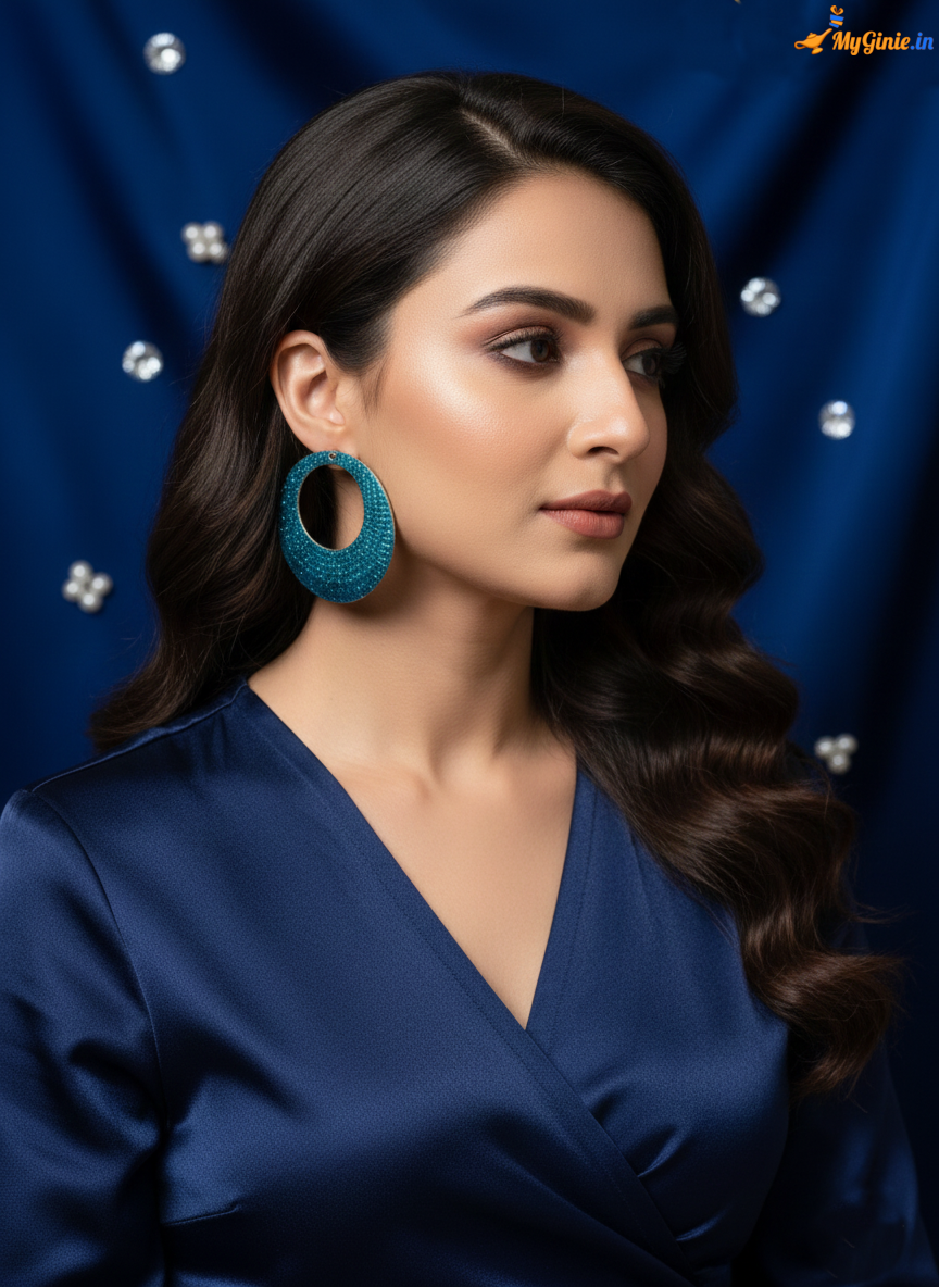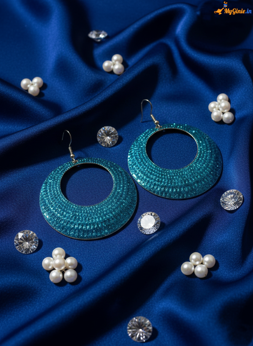 Glitter Dangler Hoop Earrings Blue