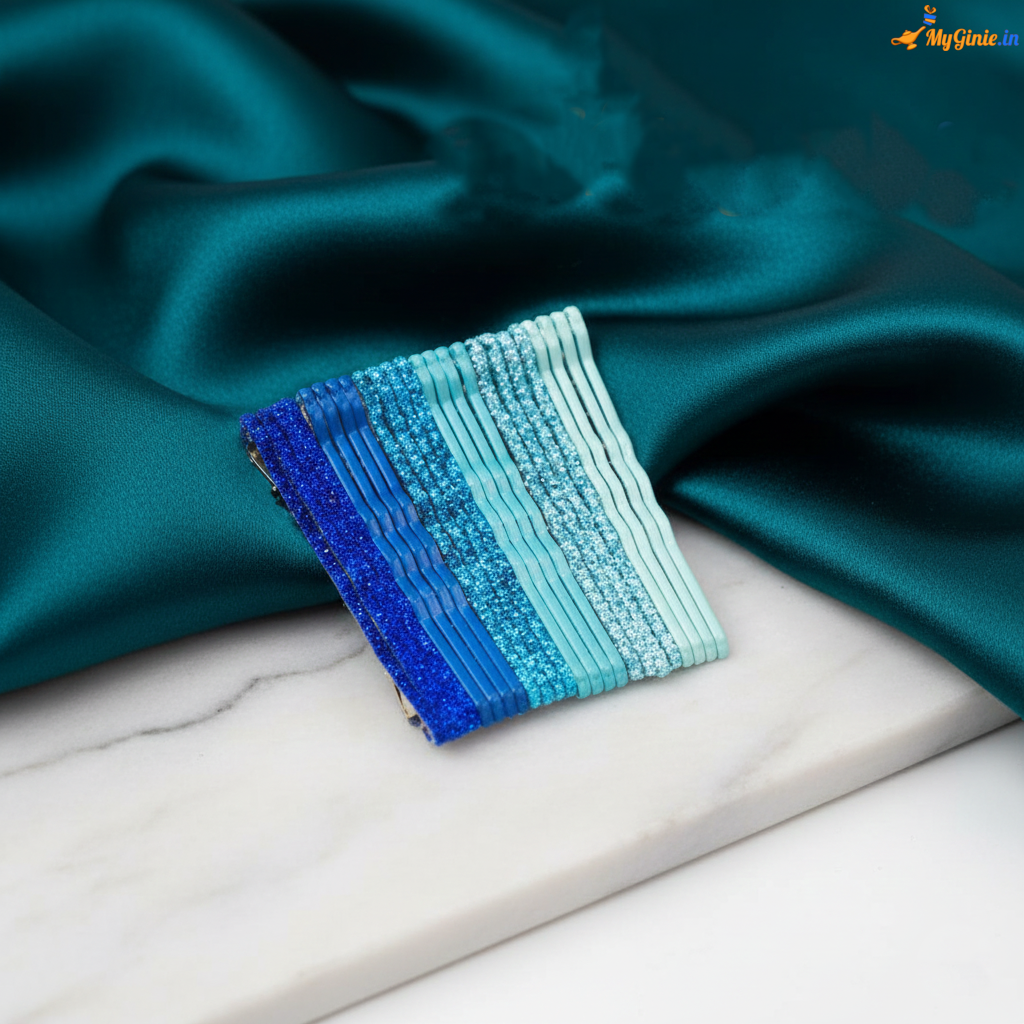 Glitter sparkle bobby pin hair multi colour light blue, blue and dark blue clip set of 24 booby pins.