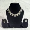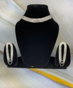 Crafted from high-quality materials, the necklace drapes gracefully around the neck, while the earrings and maang tikka perfectly complement the overall design. Ideal for weddings, festivals, or any special occasion, this set enhances your beauty and showcases your cultural heritage. Make a statement and celebrate your style with this beautiful AD jewellery set—a timeless accessory that embodies elegance and tradition!