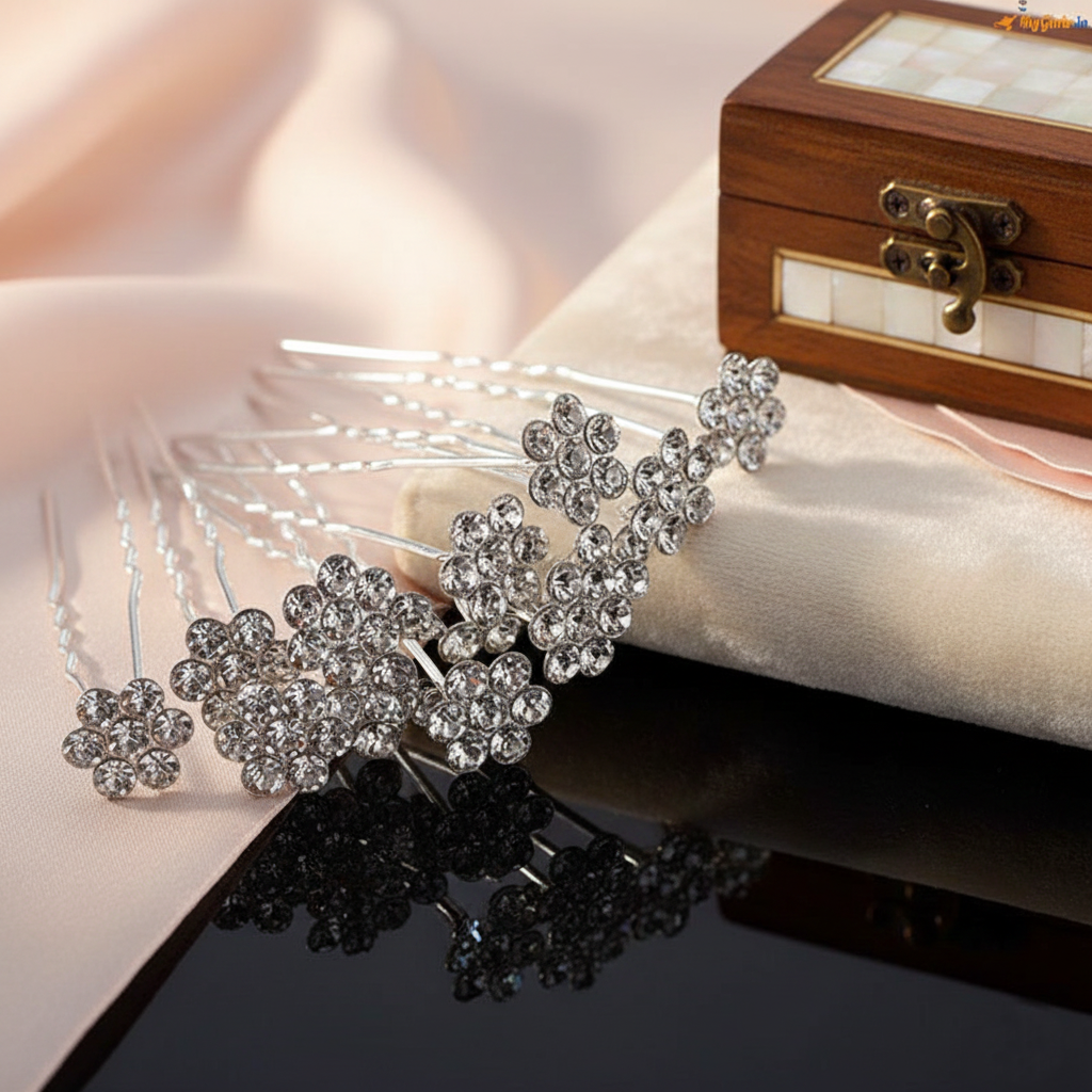 Hair Bun Pins Silver Stones Silver Pins for Women and Girls – Set of 12