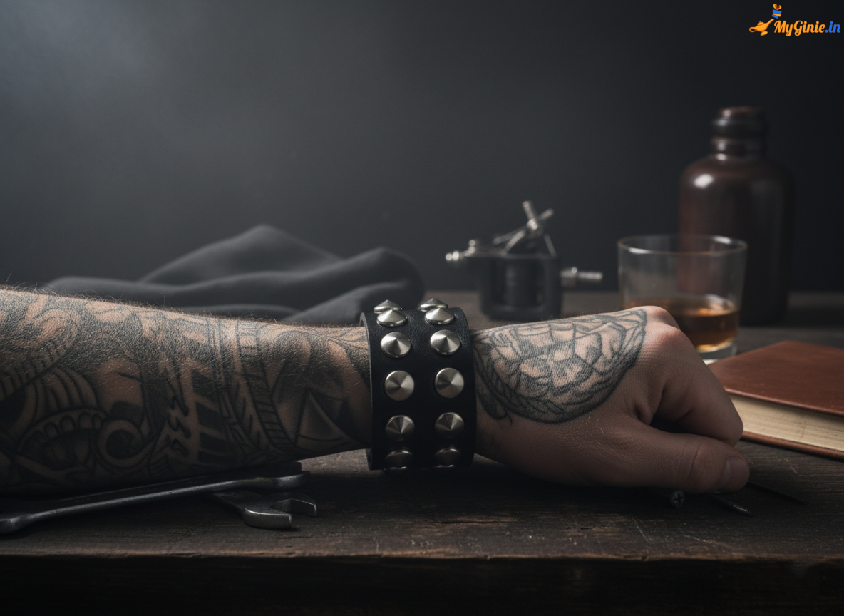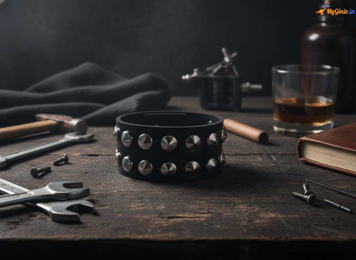 Handcrafted Leather Adjustable Wristband Strap Biker Bracelet