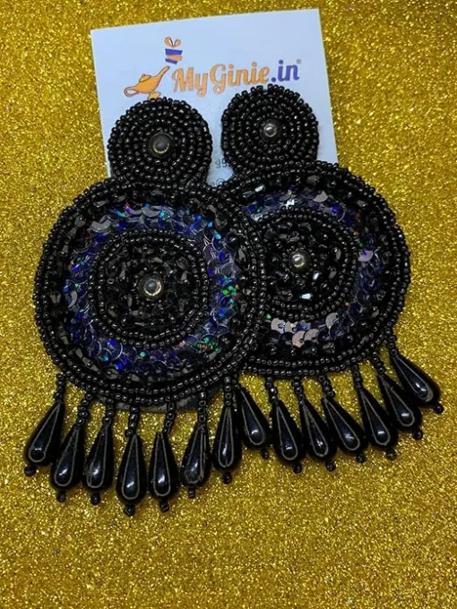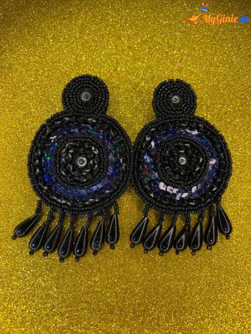 Handmade Embroidery Earring Black Beads And Sequin Work For Women