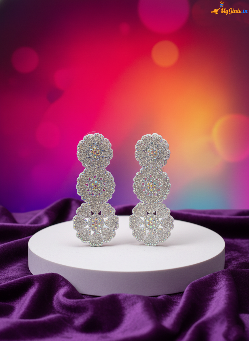Handmade Embroidery Earring Rhinestones White Flower Design For Women