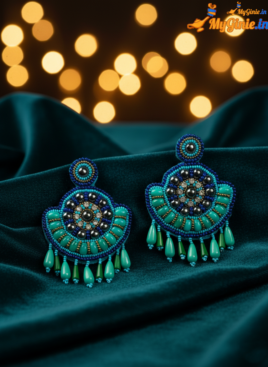 Handmade Embroidery Earring Sea Green Colour Beads For Women
