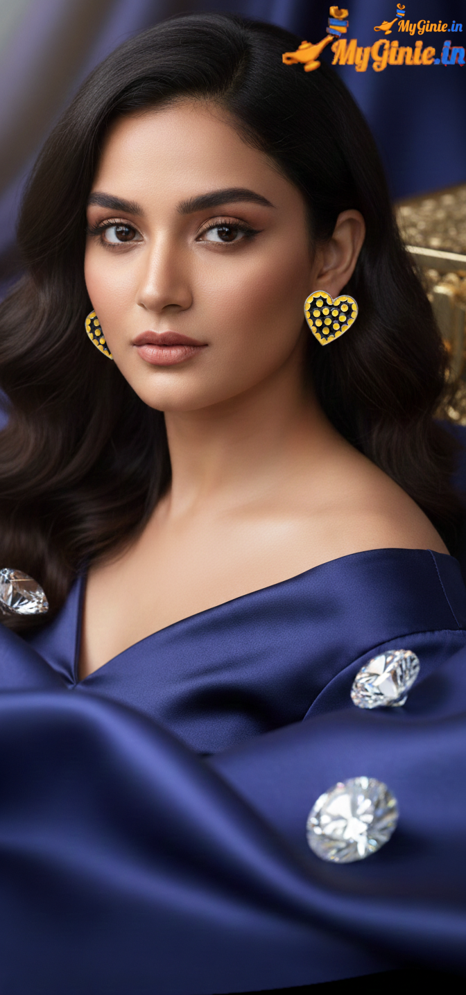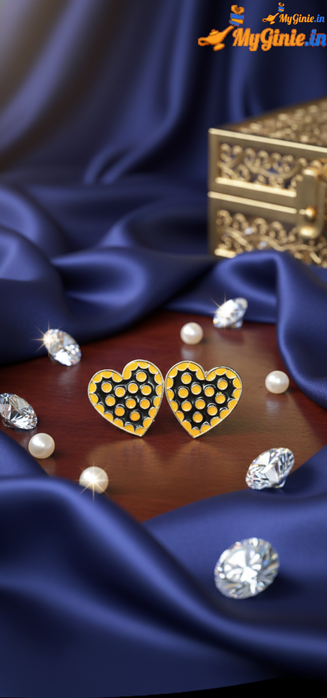 Heart Shape Metallic Earring Stud For Women Black Yellow