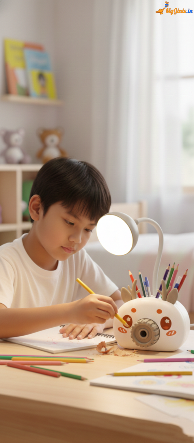 Make study time brighter, smarter, and more organized with this Kids Multi-Function Study Lamp. Designed specially for children, this all-in-one desk lamp works as a study light, pen stand, pencil sharpener, and phone stand. Perfect for study tables, it helps kids keep their stationery organized while enjoying bright, comfortable lighting.