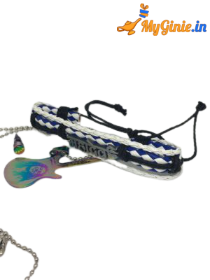 This is a combo of 3 best accessories multi colour leaf stud 1p, Bob Marley hologram guitar pendant necklace and leather white and blue Mahadev Band. Special gift on Friendship Day, Valentine’s Day.