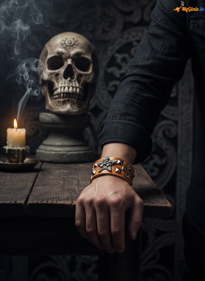 Myginie Gifts Private Limited Wristband Suitable For Casual & Party Wear. Team Up With Denims,T-Shirts,Casual Shirts And Add Funk To Your Overall Look. Trendy unisex leather wrist band leather in blue with silver Colour metallic charm design this hand band has easy and comfy fit. two rows of buttons, to fit according to fist size. SPECIFICATIONS: Weight: 25 Gms. WEARABILITY: Suitable For Casual & Party Wear. Team Up With Denims,T-Shirts,Casual Shirts And Add Funk To Your Overall Look. LOCKING: Buckle Makes it Easy To Wear & Remove, Adjustable Has 2 Buttons For Perfect Fit.