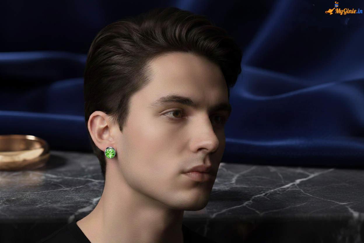 Magnetic Stainless Steel Stud For Unisex 1 Pair Green Colour