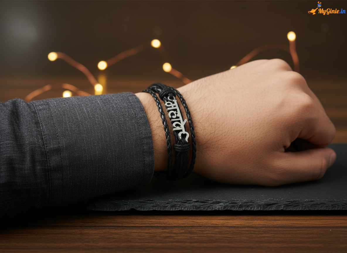 Mahadev Leather Wrist Band Black