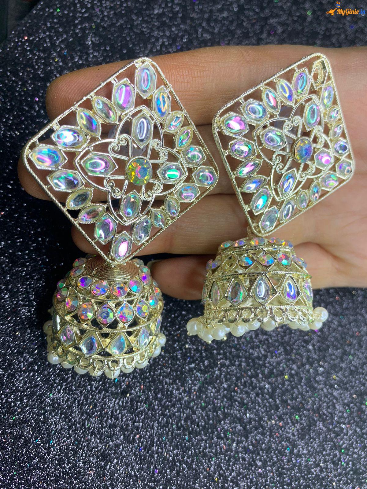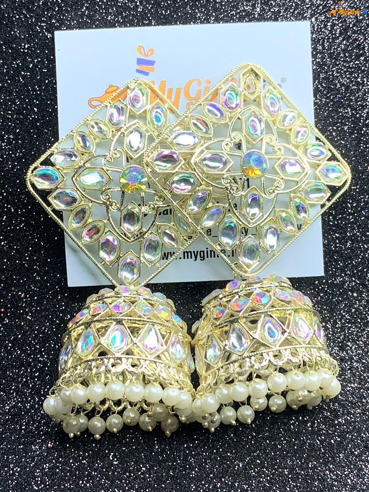 Kundan Work Big Jhumka Silver Colour With Multi Stones