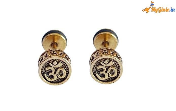 Metallic Golden OM Studs for Men Make a Statement with Spiritual Swagger