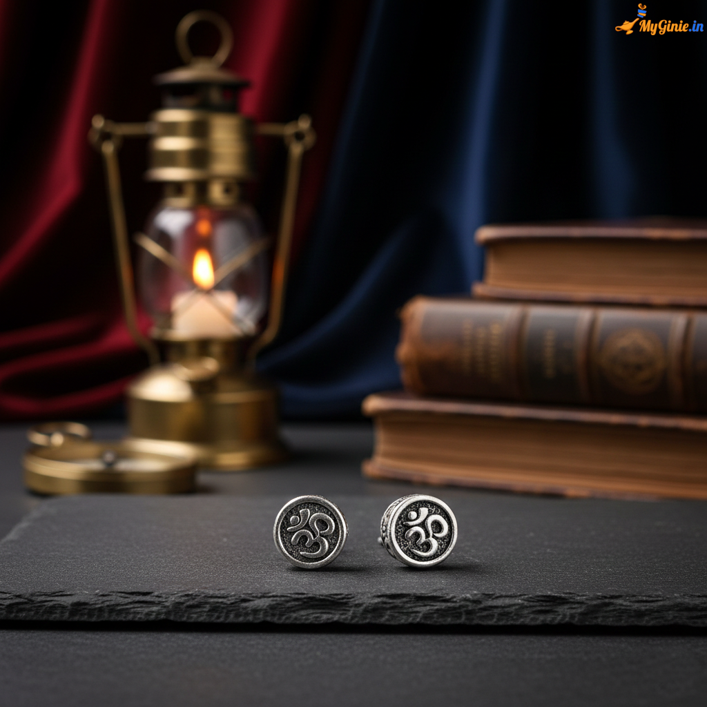 Metallic Silver OM Studs for Men Make a Statement with Spiritual Swagger