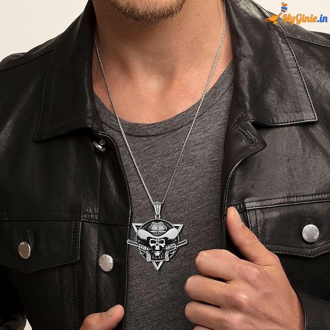 Metallic Skull With Guns locket chain For Bikers Unisex