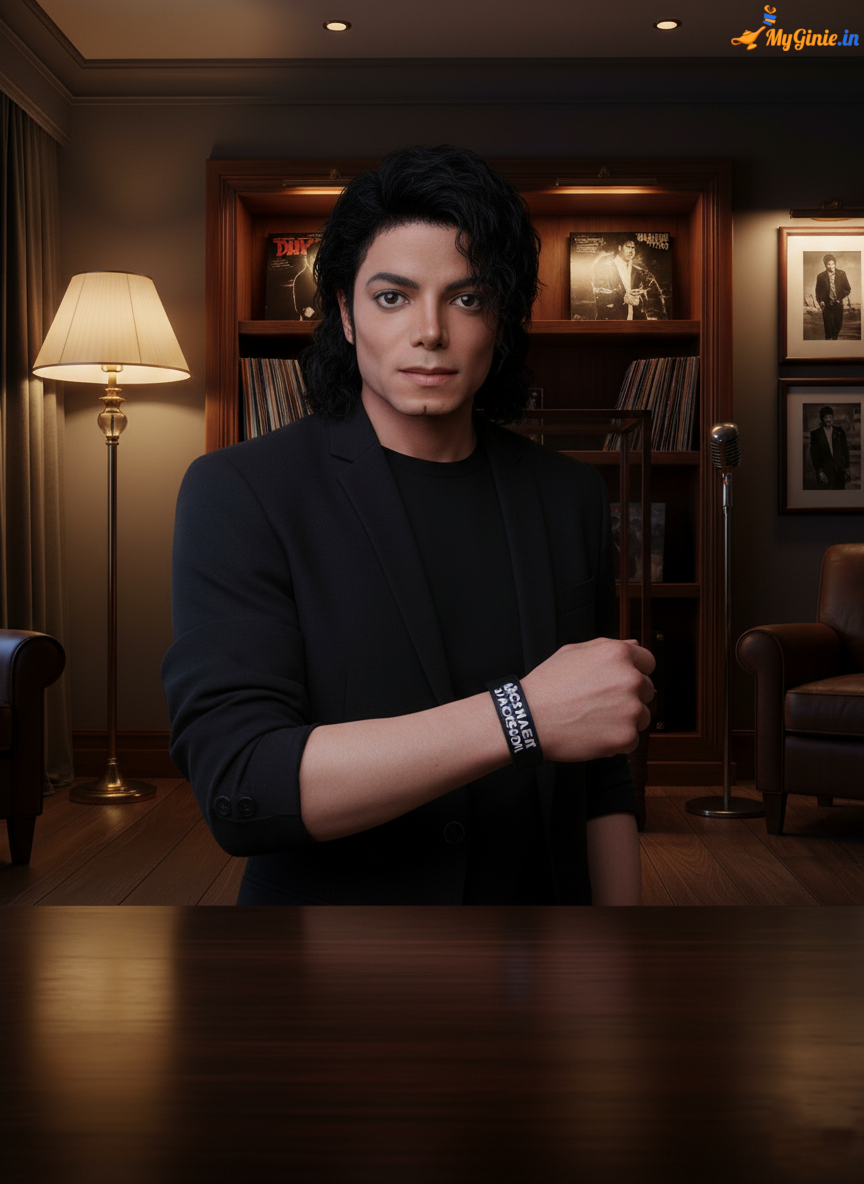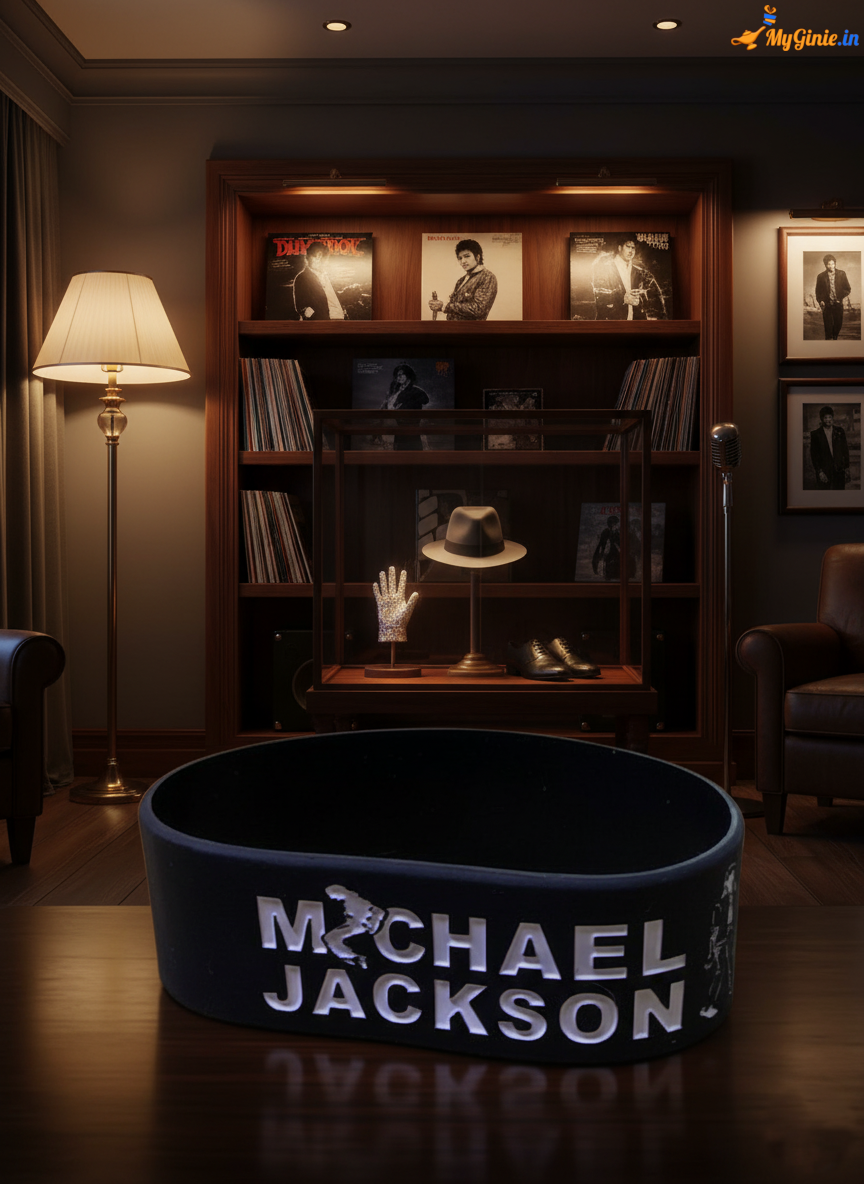 - This wristband proudly features Michael Jackson’s name and iconic motifs, making it a must-have for any true fan.