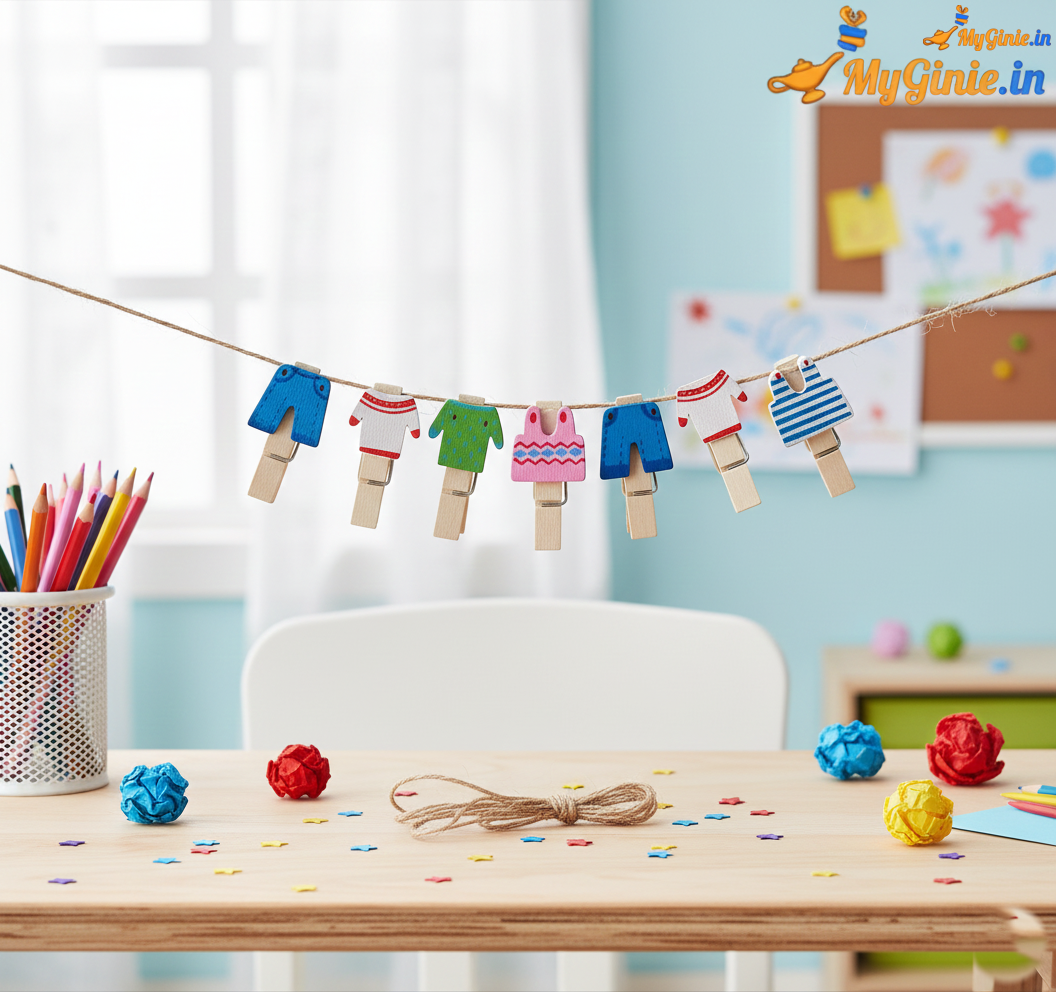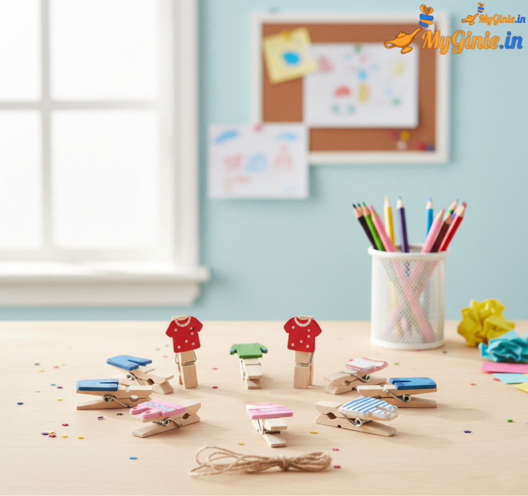 1 x set of Mini Wooden Pegs Photo Paper Clips for Party Decoration with Rope