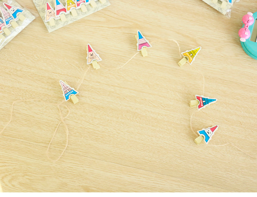 1 x set of Mini Wooden Pegs Photo Paper Clips for Party Decoration with Rope